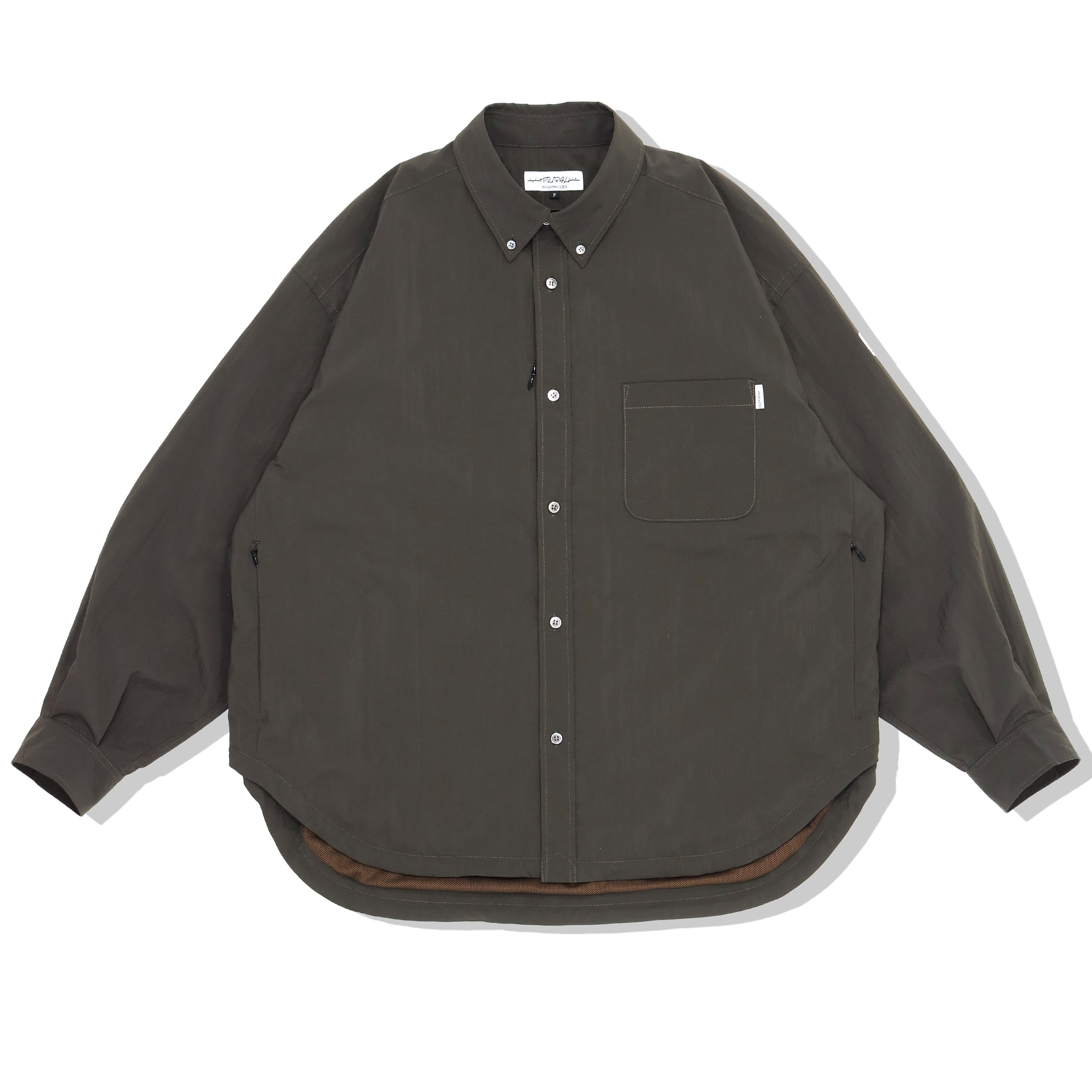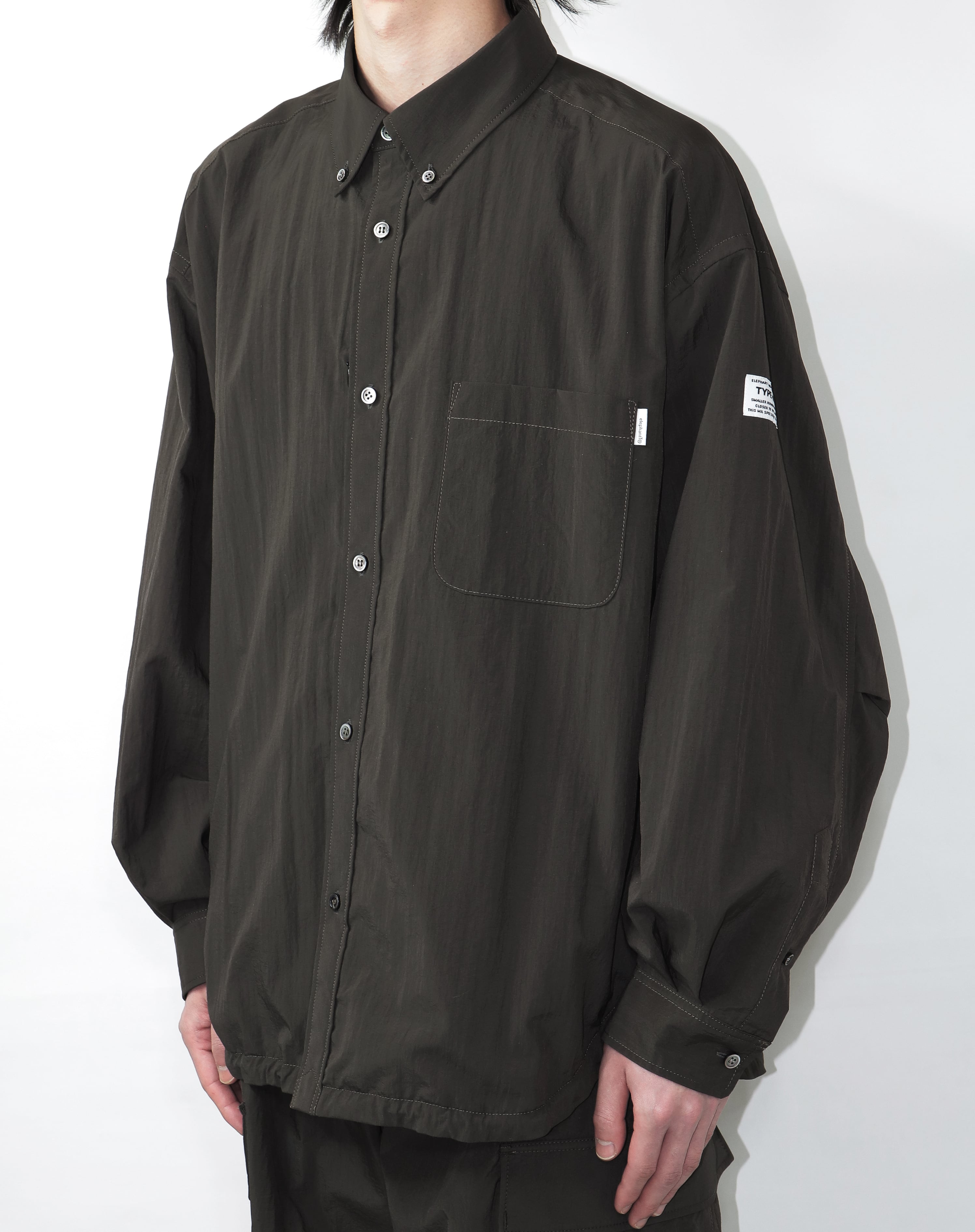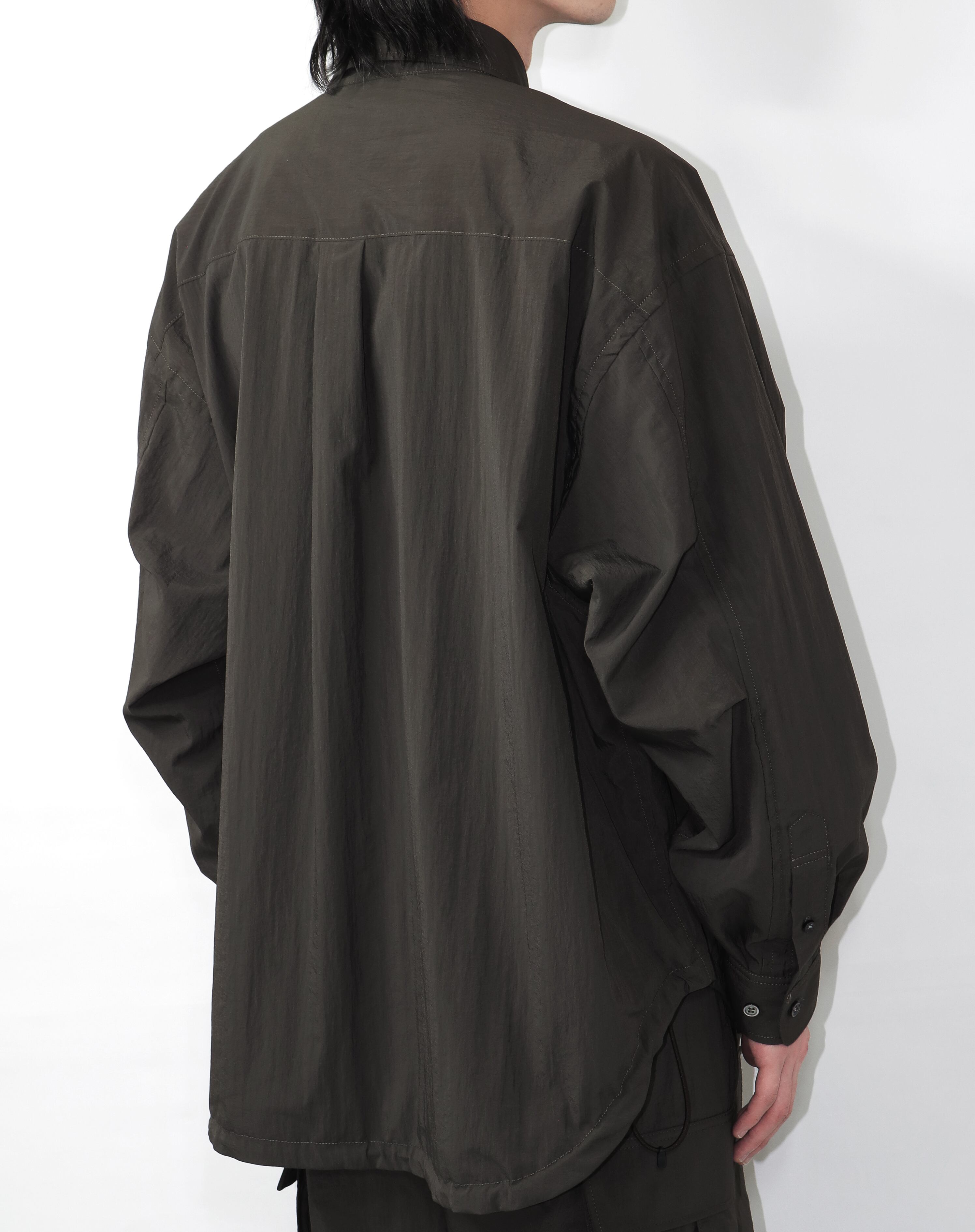 撥水機能のあるワッシャーナイロン生地を使用した超ワイドシルエットのボタンダウンシャツ。