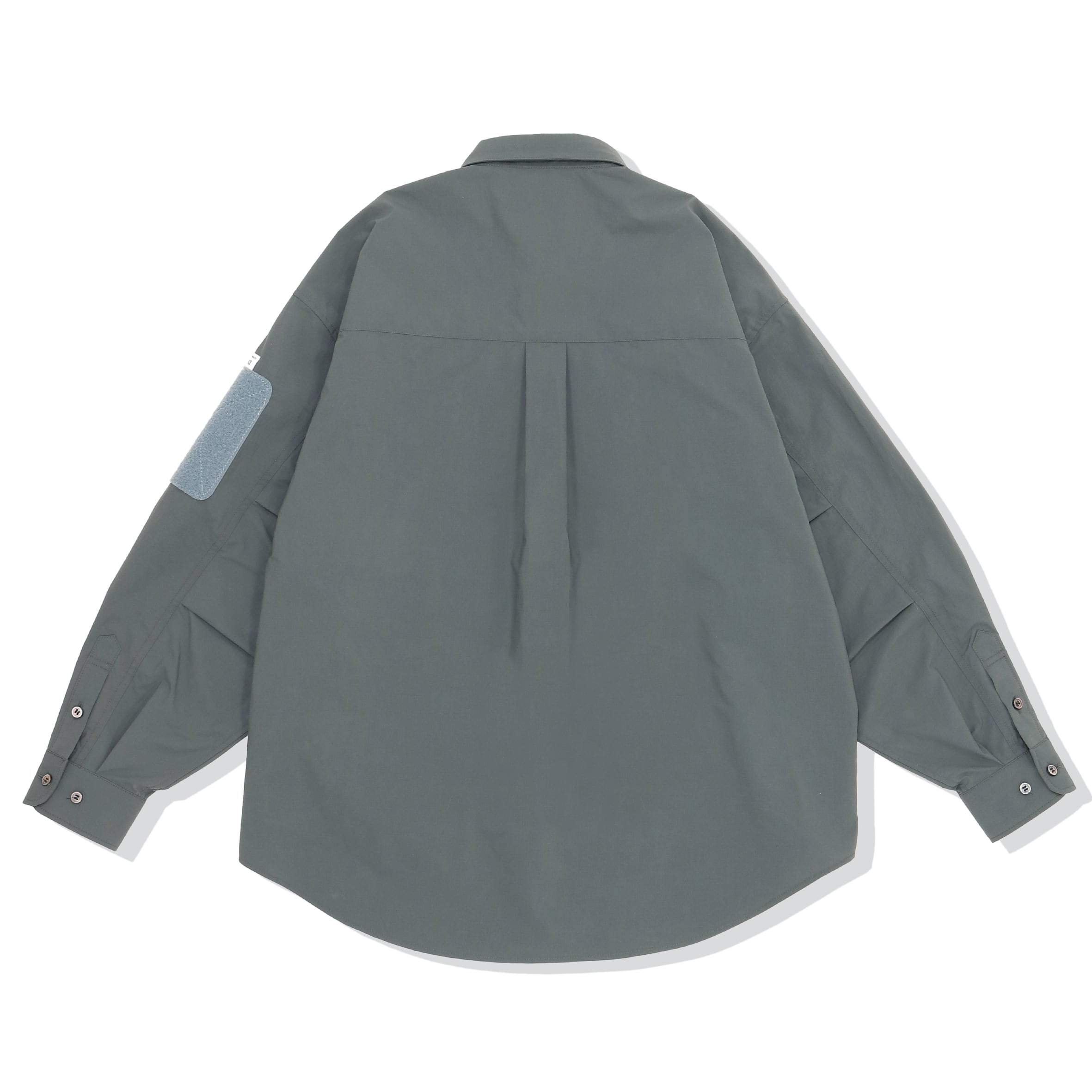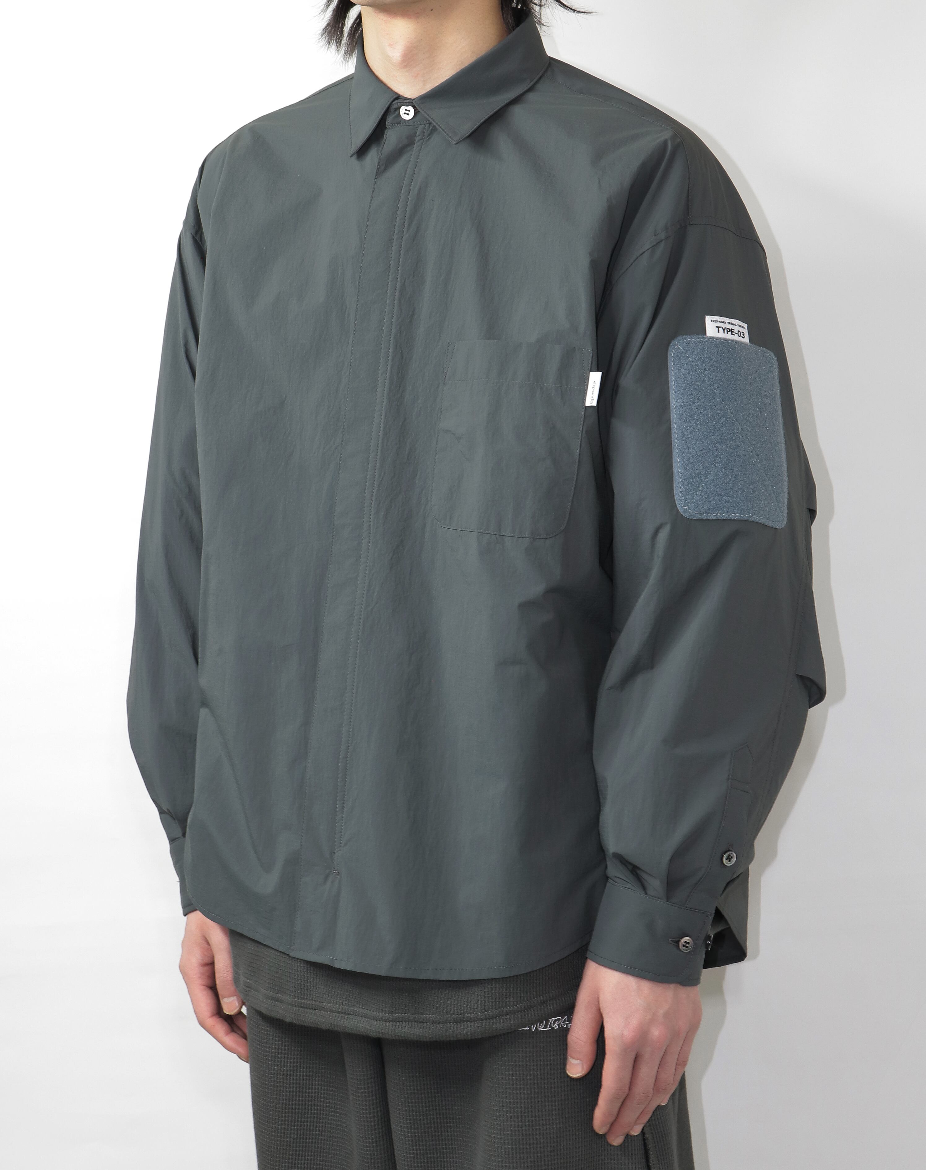パンツインでもアウト使いやすいよう前着丈は少し短めに設定しゆとりのある身幅、タック付のアームを持たせたボックスシルエット。