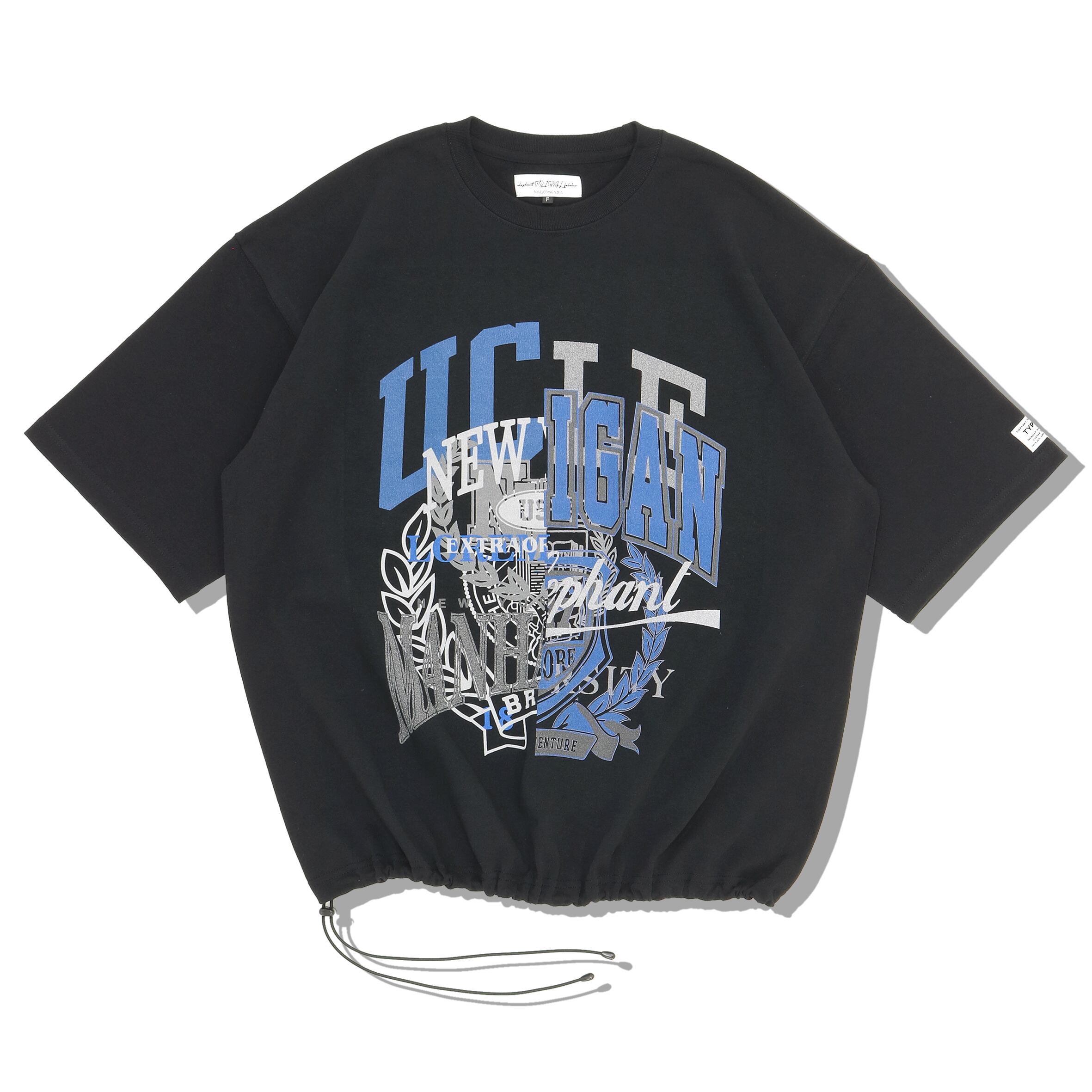 多種類のカレッジグラフィックをのせたグラフィックT。