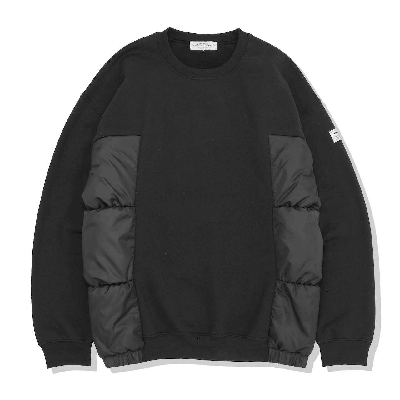 パファージャケットと裏起毛クルーネックスウェットをドッキングしたアイテム。