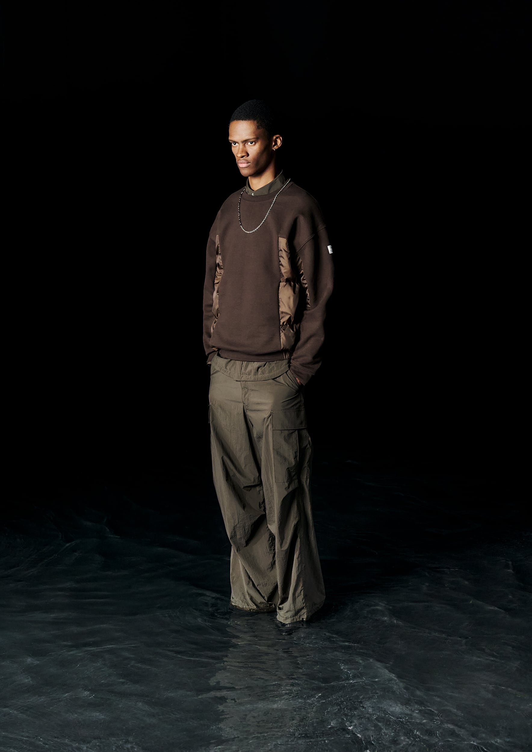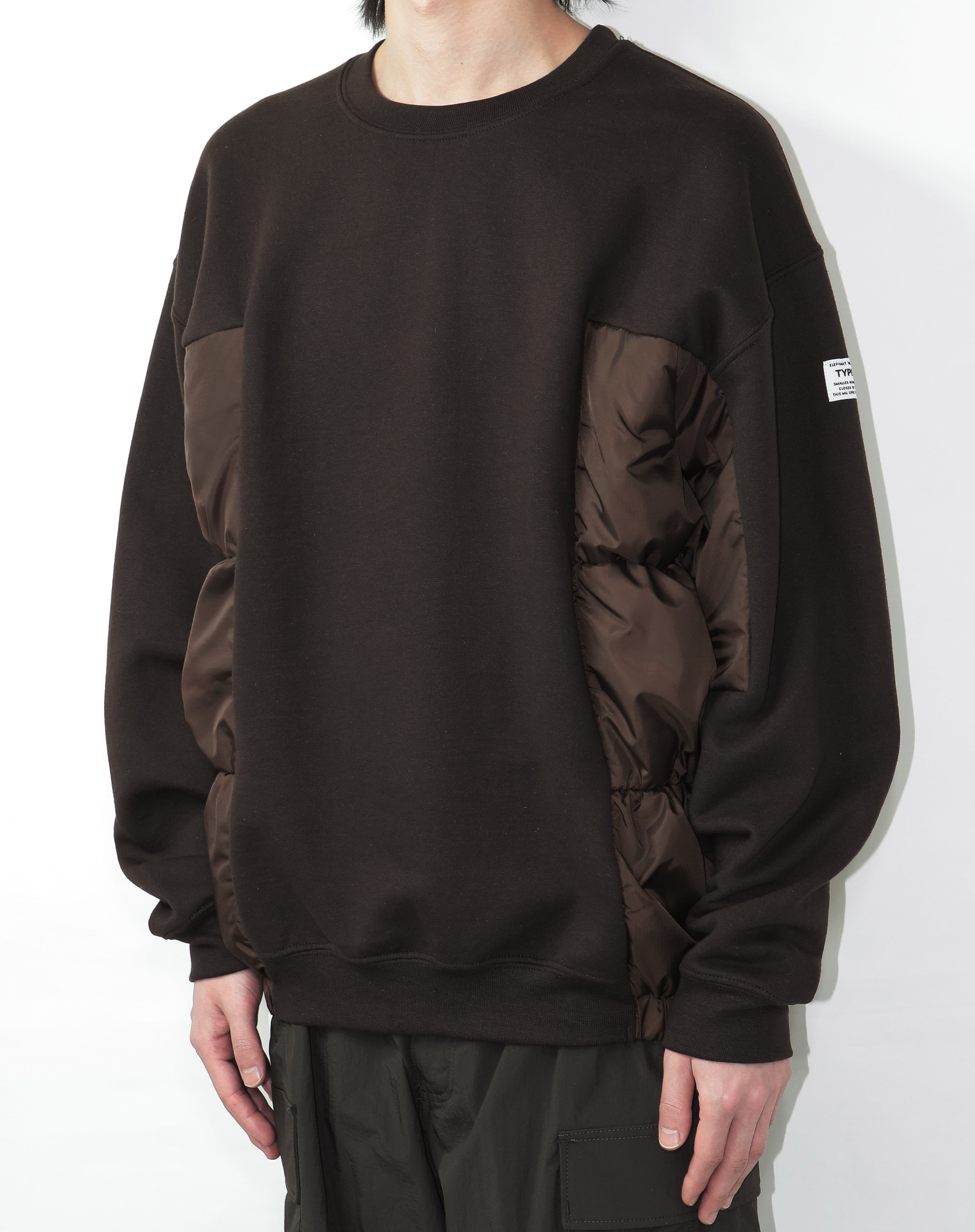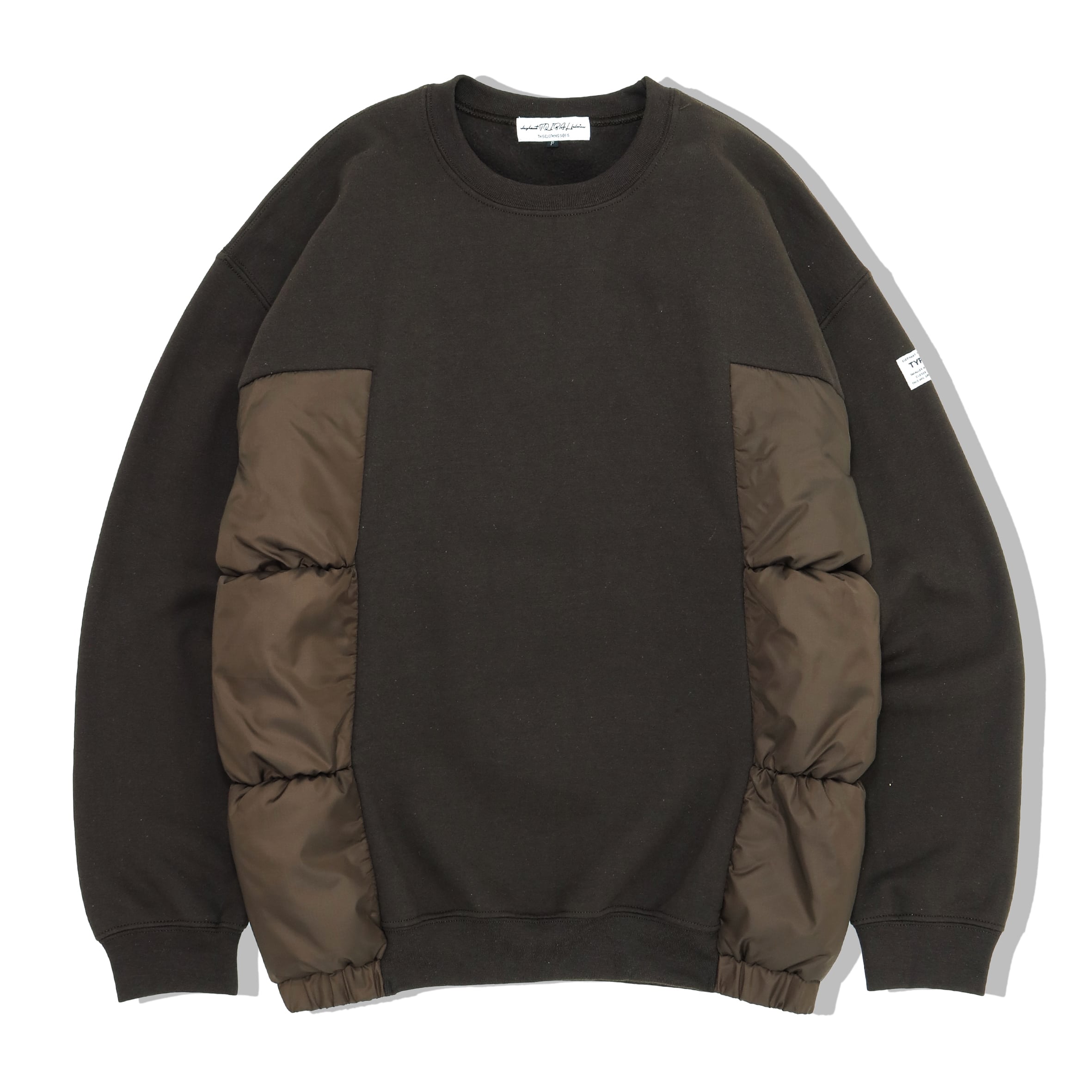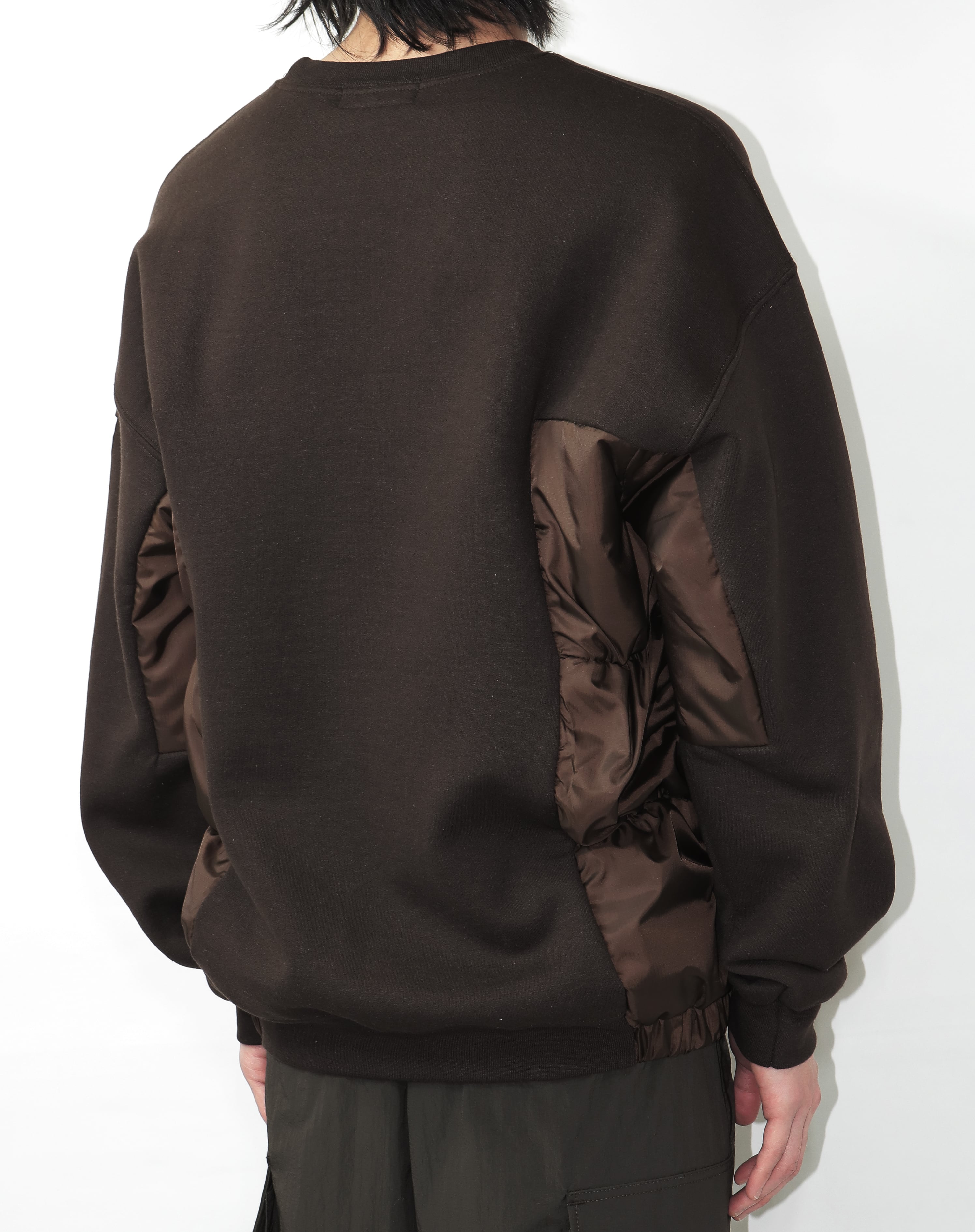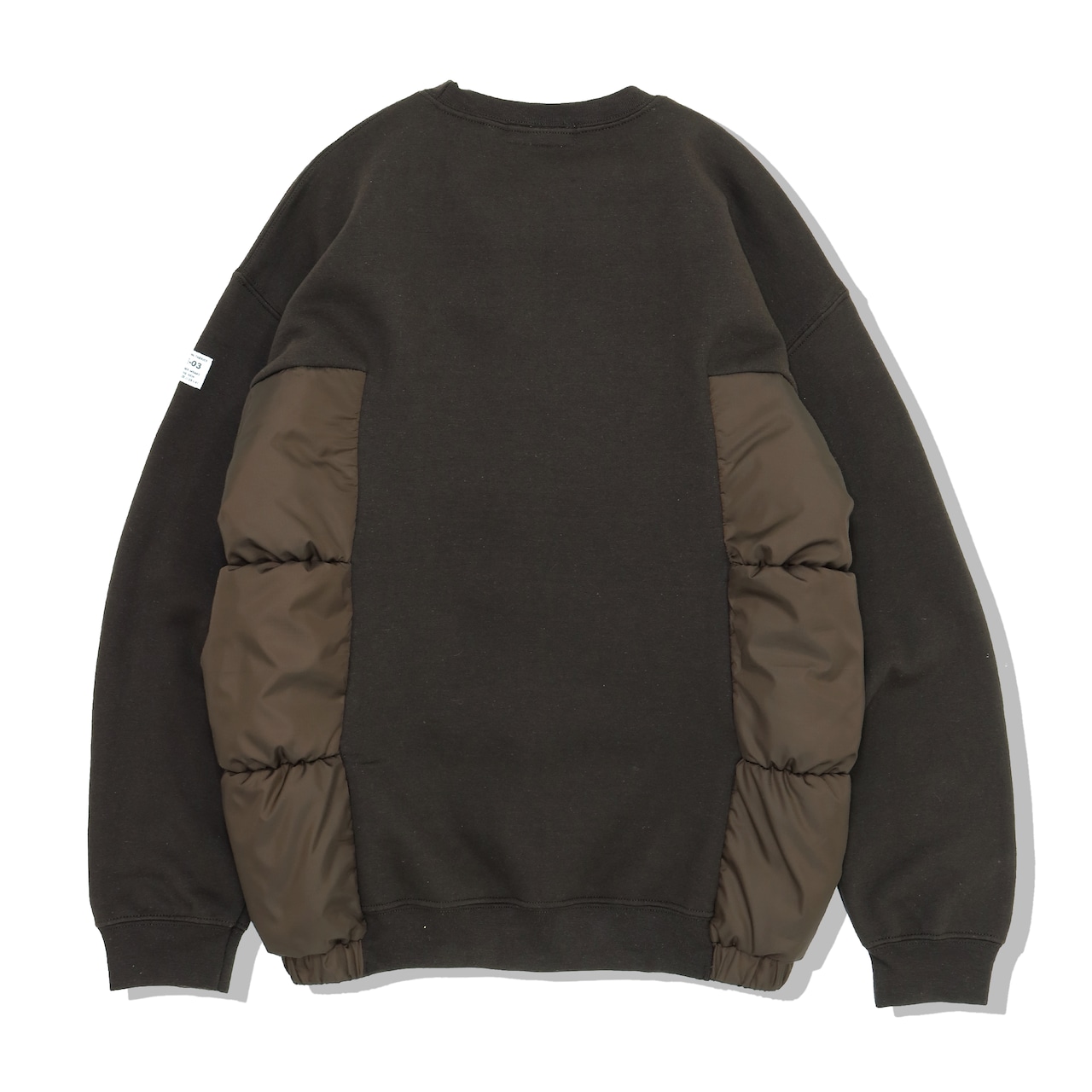パファージャケットと裏起毛クルーネックスウェットをドッキングしたアイテム。