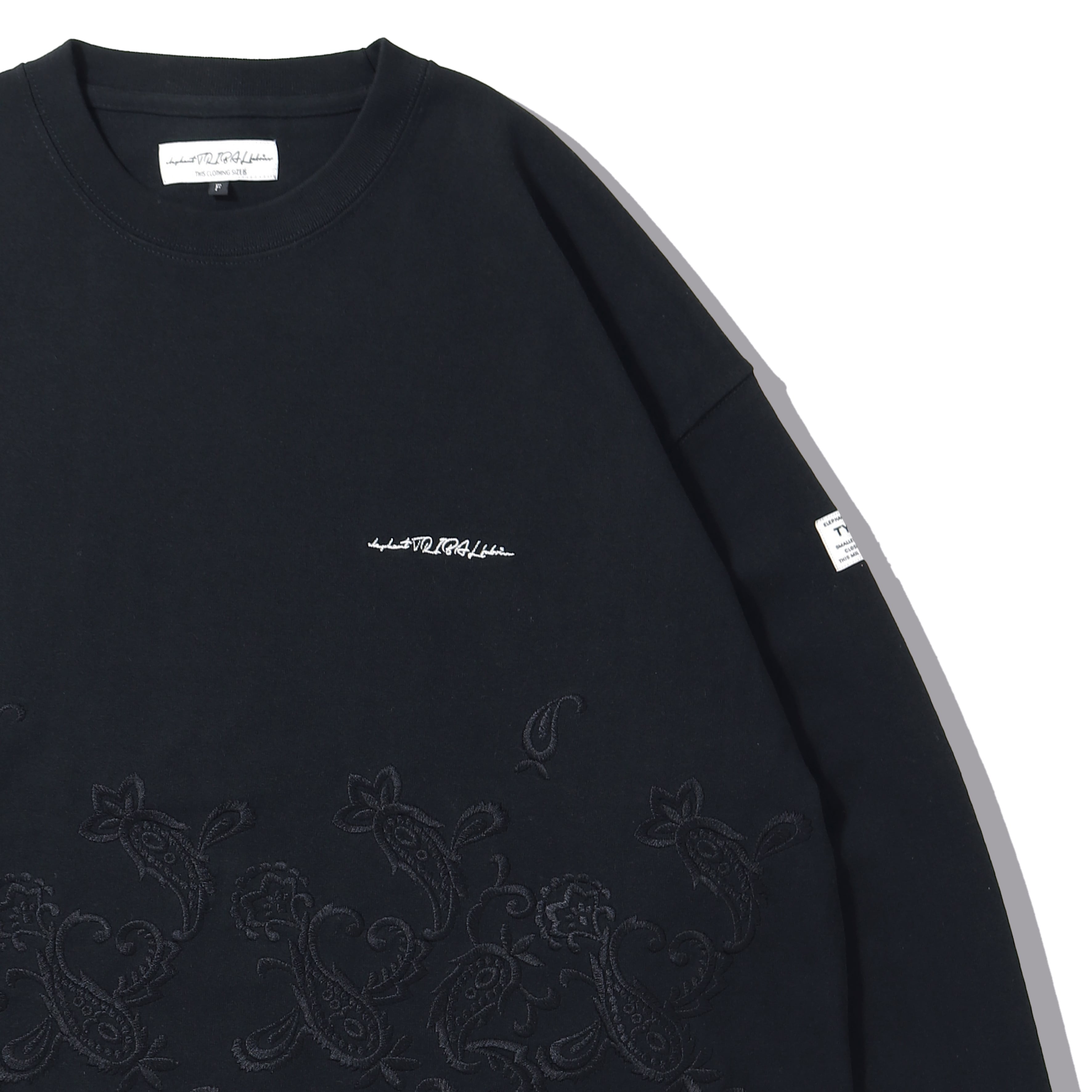 定番で展開しているFAT ロングスリーブT-SHをベースにフロント中央から裾にかけてペイズリー刺繡を施したアイテム。
